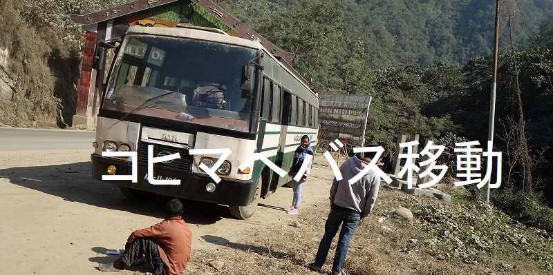 と言っているところに見覚えのあるカラーリングのバスが。コヒマ発のバスだろう。またまた反対側に走って行き、止めようとするも手を振ってダメダメと行ってしまう。もう1台来たが、それも行ってしまう。