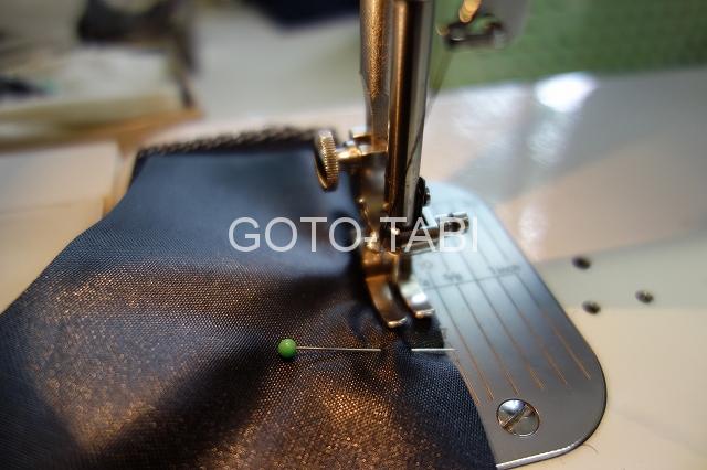 あとは、抑えは弱めに。上糸下糸とも弱めに。水平釜の場合は糸調子はできないのかな、GOTOは垂直釜の職業用ミシンなので、特に下糸は緩めました。