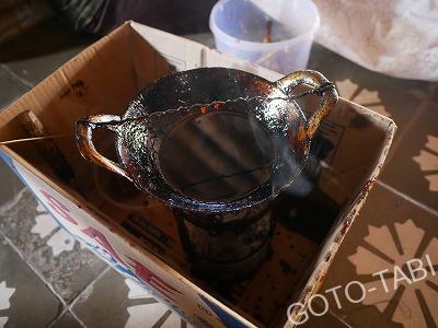 下で小さな火が燃えている。これはどこの工房に行っても、蝋付けの工程がある限り必ずあるセットだ。