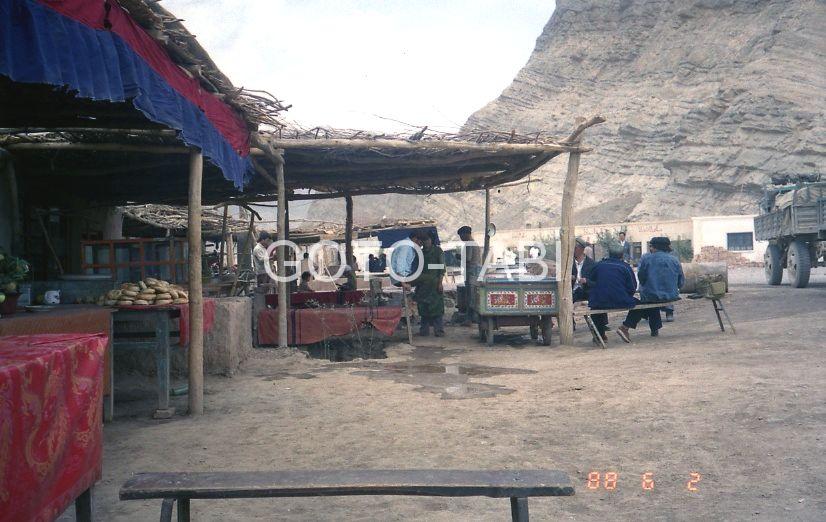 ここで売っていたのは、ドライフルーツと固いパンと、あと何だろう。隅のほうでウイグル帽子などは売っていたか。シシカバブも焼いていた。麺の屋台も幾つかは出ていた。干した杏を荷車の荷台のような斜めにした大きな台に何層にも積み、上から水(?)をかけては下に落ちてくる水をまた掬ってはかけ、したジュースのようなものも売っていた。さすがに危なそうで手は出なかった。そうするとそれなりに店はあり、人もいただろうに、でもやっぱり、賑やかな記憶はないのだ。